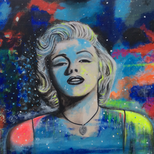 While painting the image of Marilyn Monroe, I happened to see Elton John step onto the stage. The way I interpreted the colors, lighting, and energy of his performance shaped the final piece for me.