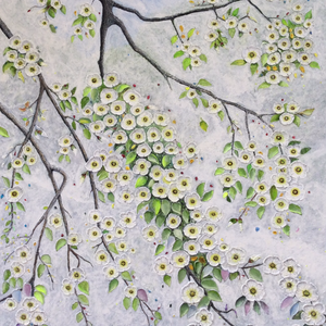 Misty cherry branches