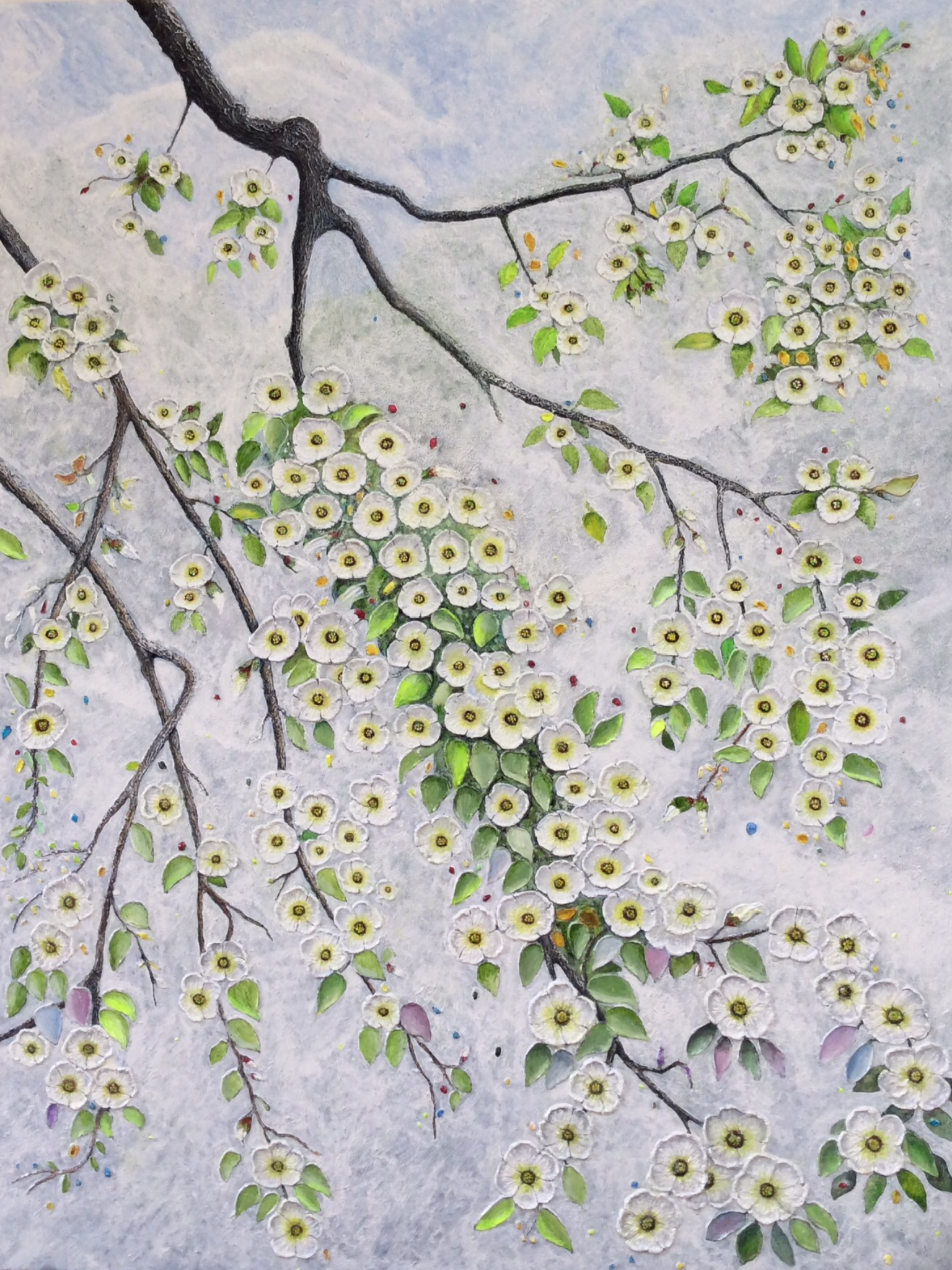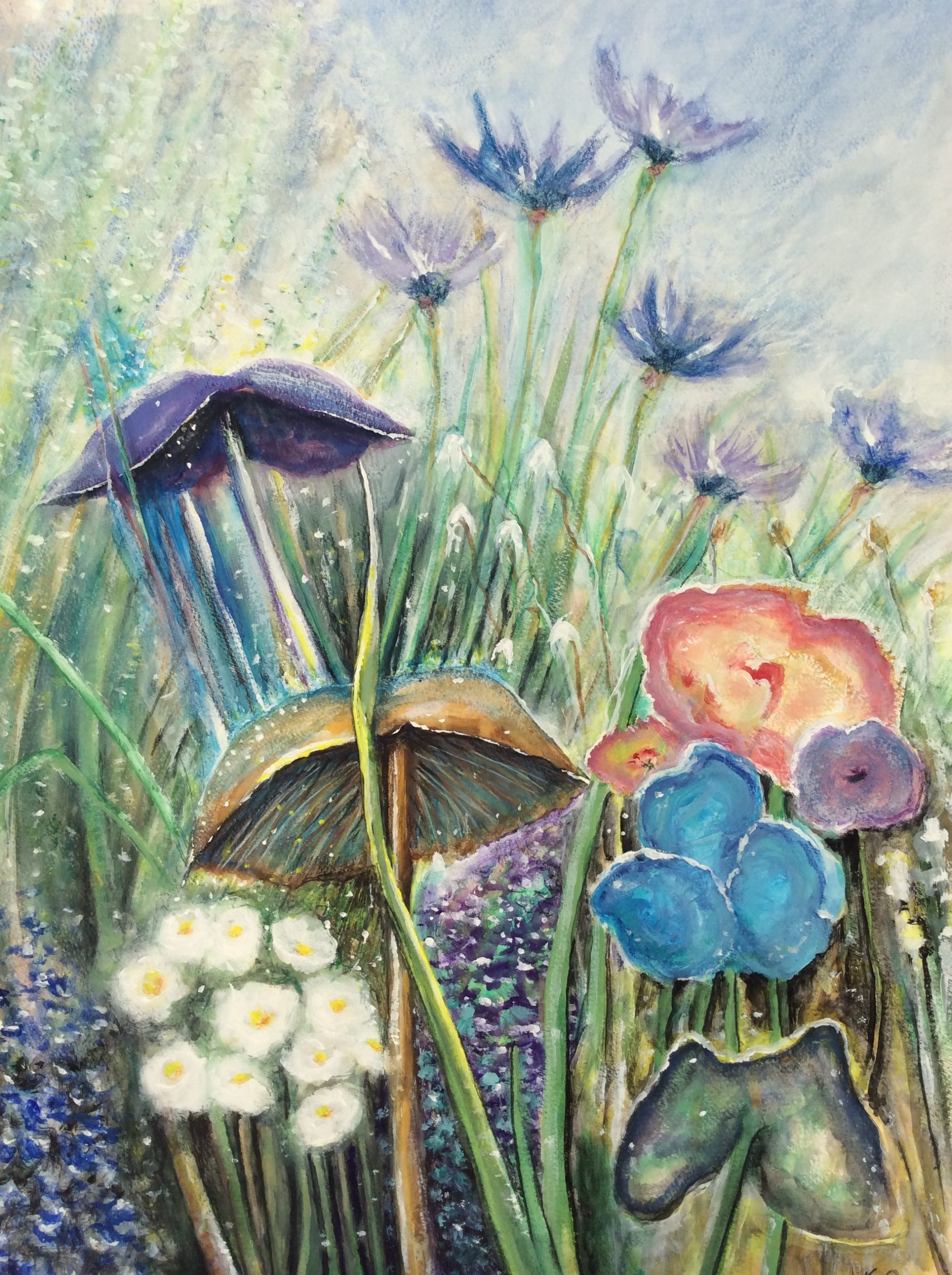 This painting originally began in black and white. Although it looked nice, it didn’t inspire me. Adding color was a challenge, but in my eyes, it brought the picture to life.